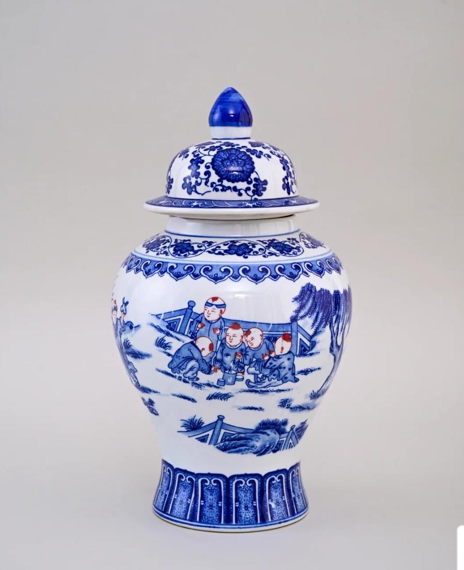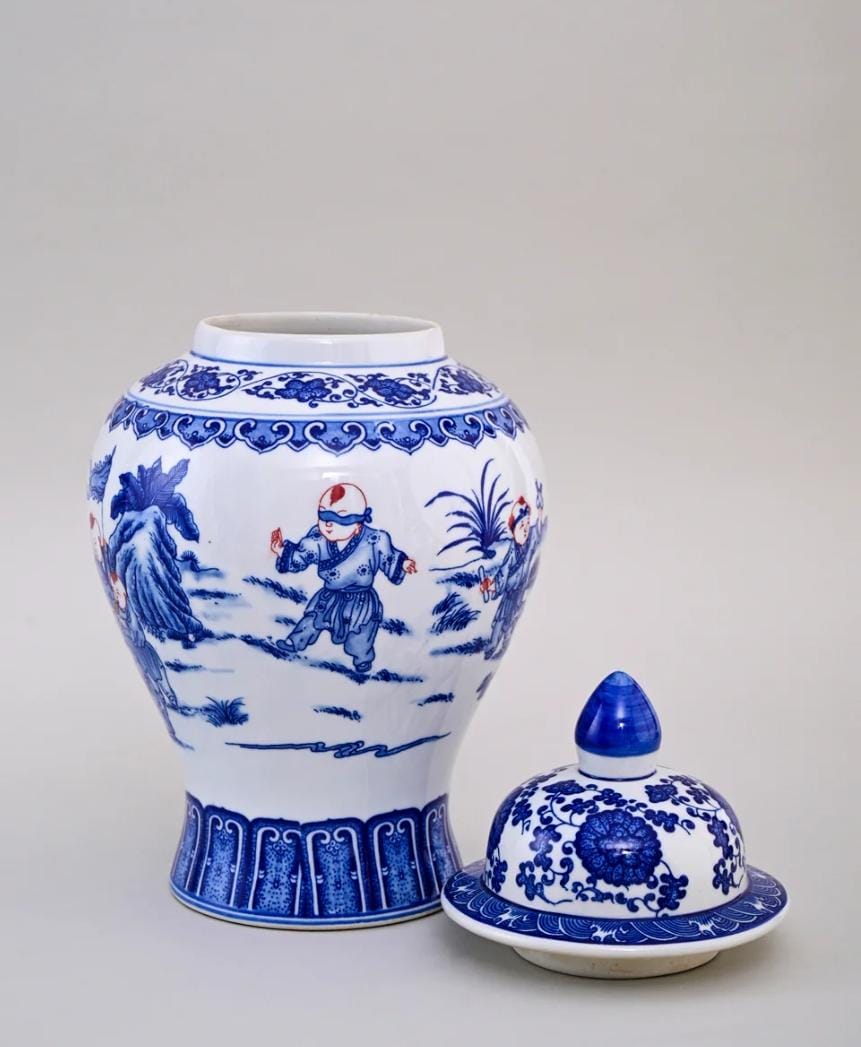 Blue And White Motif Children Jar